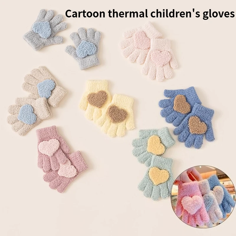 Heiße verkaufende warme Winterhandschuhe für Kinder, dicke Strickhandschuhe, Fünf-Finger-Split, kältebeständig, herzförmige Cartoon-Handschuhe