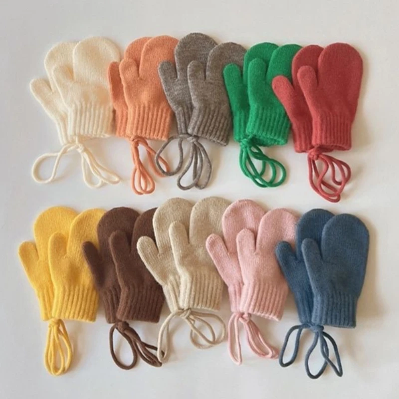 Winter-Babyhandschuhe, warme Wollhandschuhe, Kinder-Vollfingerhandschuhe für 1–4 Jahre, zum Umhängen, Winterhandschuhe, Baby-Zubehör