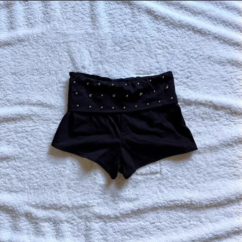 Y2K Gothic Punk Dark Rhinestone Minirock Schwarz Sexy Low Waist Slim Fit Edgy Vielseitige Shorts Streetwear