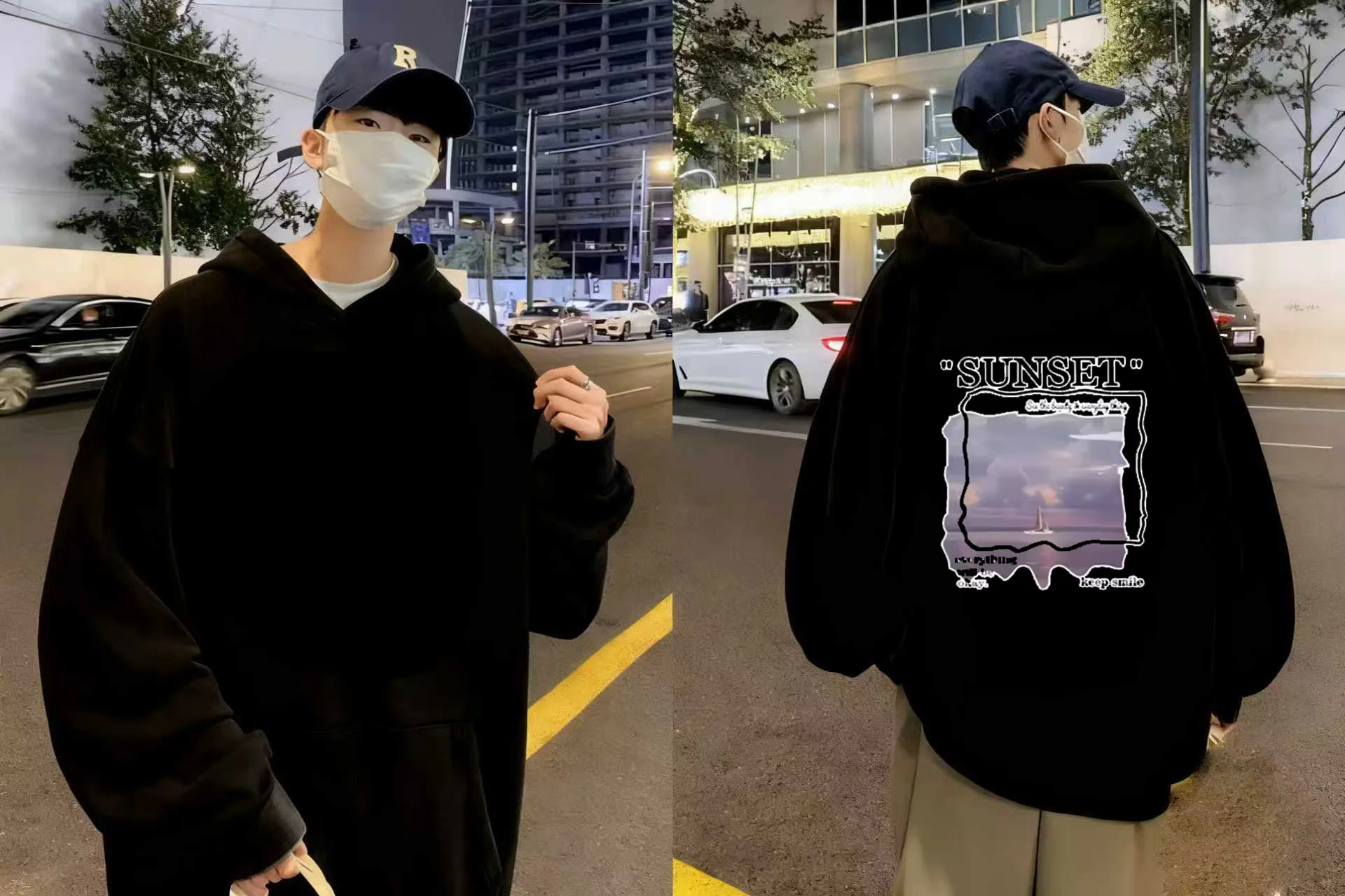 SUNSET Print Hoodie 2025 Neu 330 g Schwergewicht Schwarz Sweatshirt Love Zone Text Design Unisex Streetwear Casual Pullover Männer Frauen
