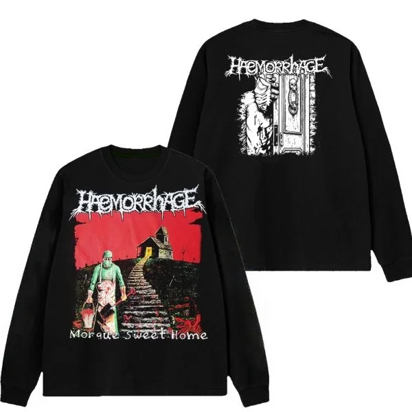 HERbst/Winter HAEMORRHAGE 2025, MORGUE SWEET HOME, bedruckt, neutral, Street Fashion, reine Baumwolle, Rundhalsausschnitt