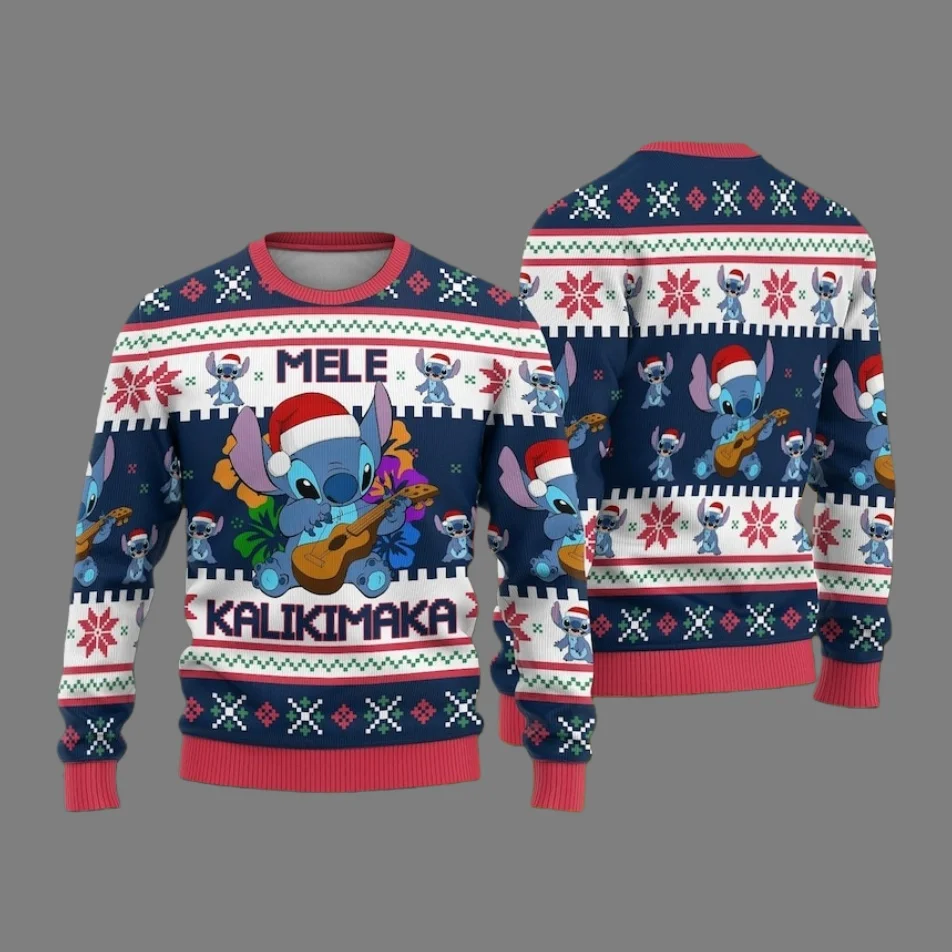 Disney Family Stitch Theme Hässlicher Pullover Weihnachtsfeier Rundhals-Hoodie Vergrößertes Herbst-/Winter-Top für Erwachsene Neuer Stil