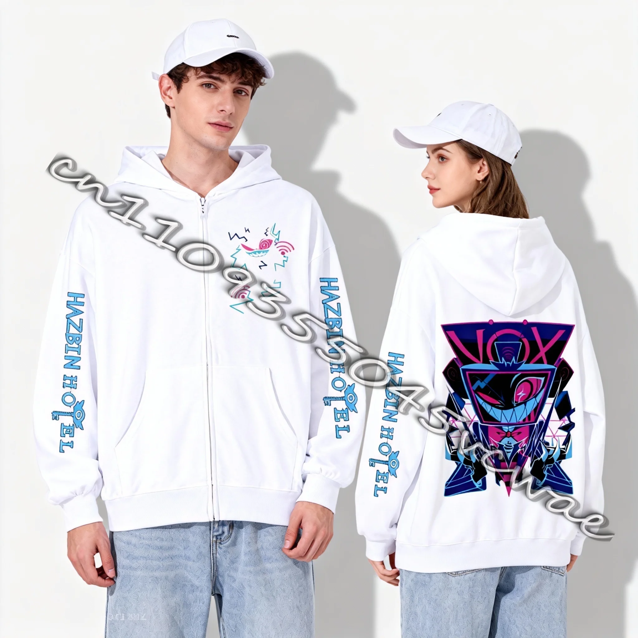 Helluva Boss Cartoon bedruckte Kapuzenpullover mit Reißverschluss, Harajuku Gothic Y2k Zip-Up-Hoodie, Herrenbekleidung, langärmelig, Fleece, lässige Streetwear