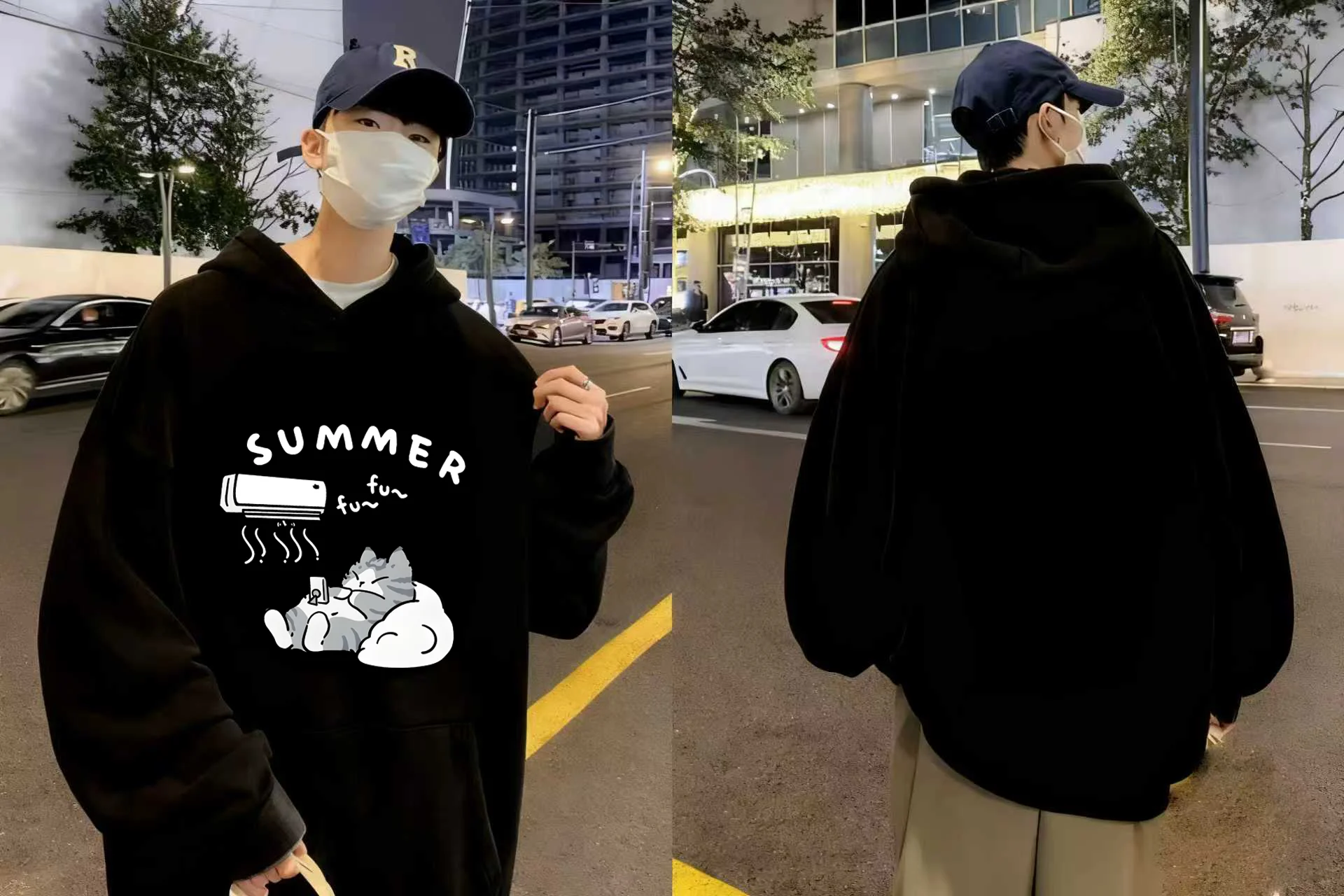 SOMMER Spaß Katze Druck Hoodie 2025 Neue 330g Schwergewicht Schwarz Sweatshirt Unisex Streetwear Casual Pullover Männer Frauen Hoodies