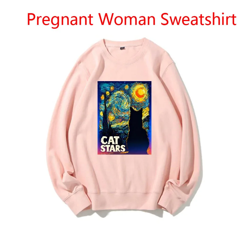 Frühling Herbst Pullover Mutterschaft Frauen Schwarze Katze Sternenhimmel Nacht Lustige süße süße Druckidee Coole schwangere Frau Sweatshirt