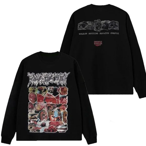 2025 Herbst/Winter SWOLLEN ROTTING BLOATED CORPSE Bedrucktes Unisex-Street-Fashion-Trend-Sweatshirt aus reiner Baumwolle mit Rundhalsausschnitt