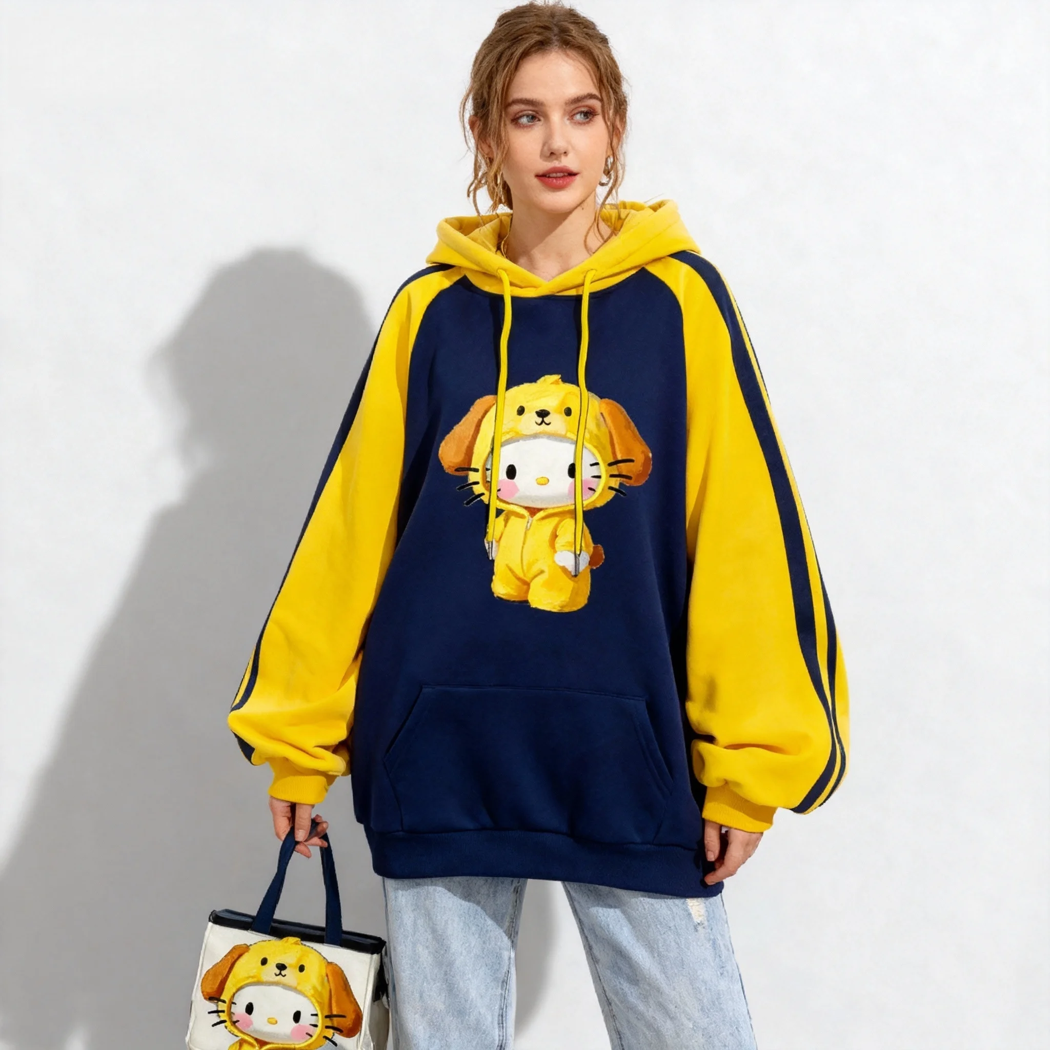 Neue Sanrio Family Hello Kitty Collection Sweet Cool American Trendy Street Herbst/Winter Hoodie Plus Size Damen Erwachsene 25/26