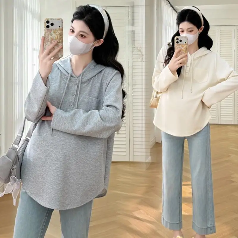Übergroßes Kapuzenoberteil für schwangere Frauen Frühling, windabweisende Konstruktion, weiche Umstands-Hoodies für den A2UB