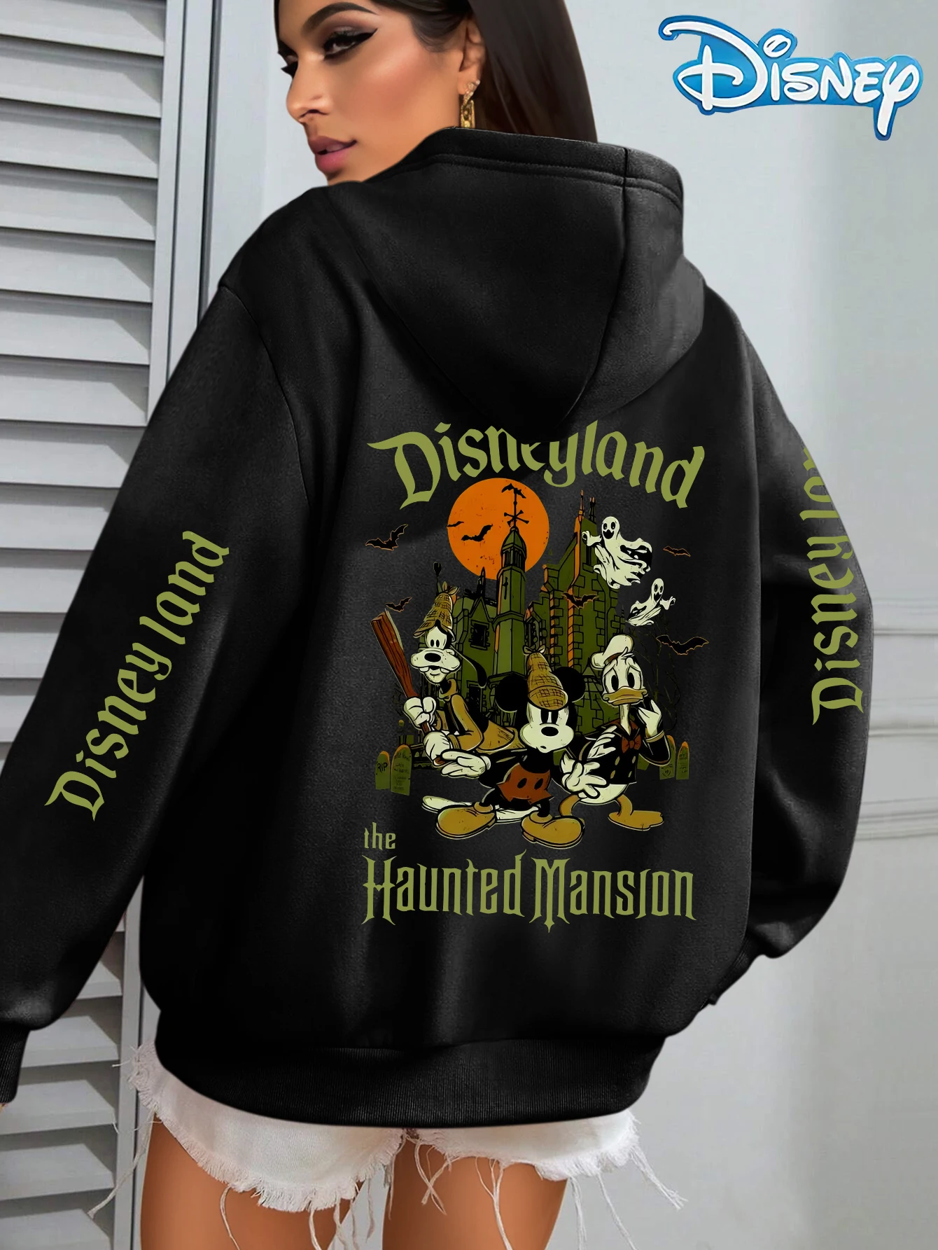 Disney Halloween Collaboration Skeleton Jack&Sally CP bedruckter Kapuzenpullover im dunklen Stil, süßes und cooles Outfit im amerikanischen Retro-Stil, übergroß