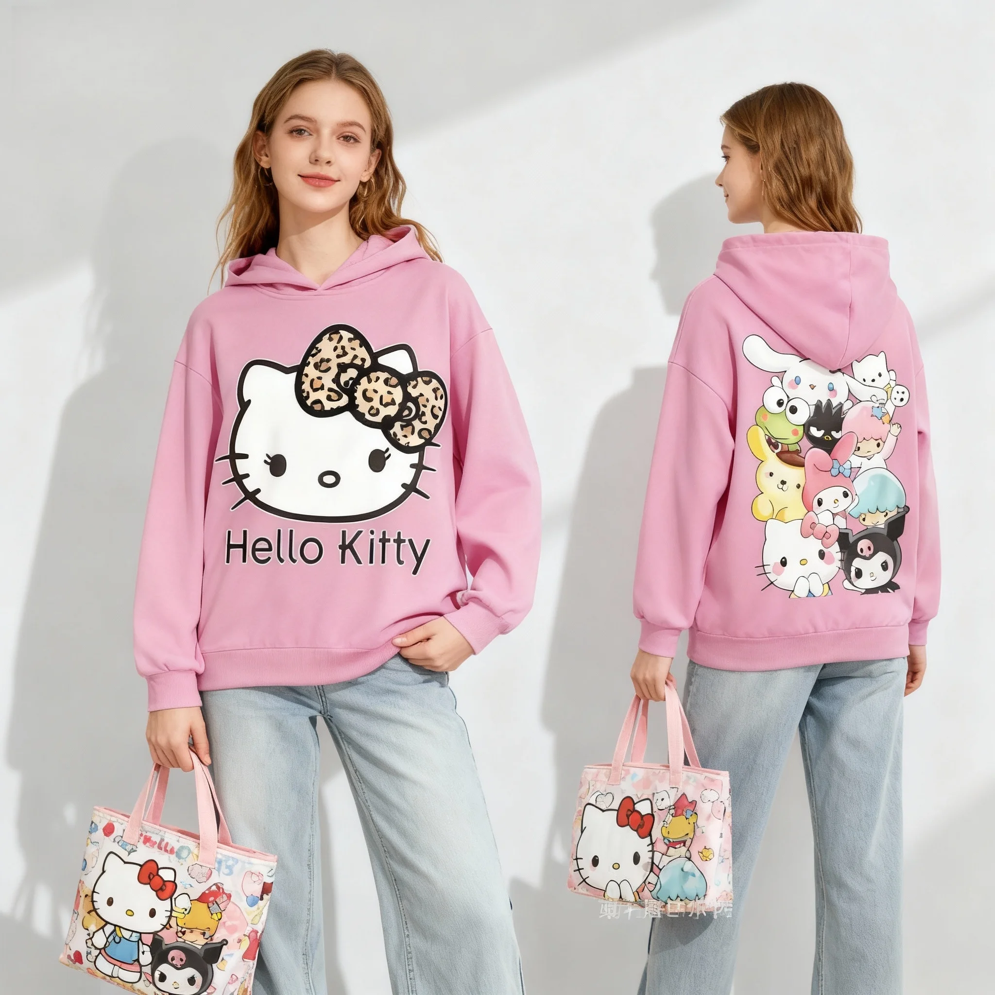 Sanrio Family Hello Kitty Full Collection Sweet Cool American Trendy Street Herbst/Winter Hoodie Plus Size Damen Erwachsene 25/26
