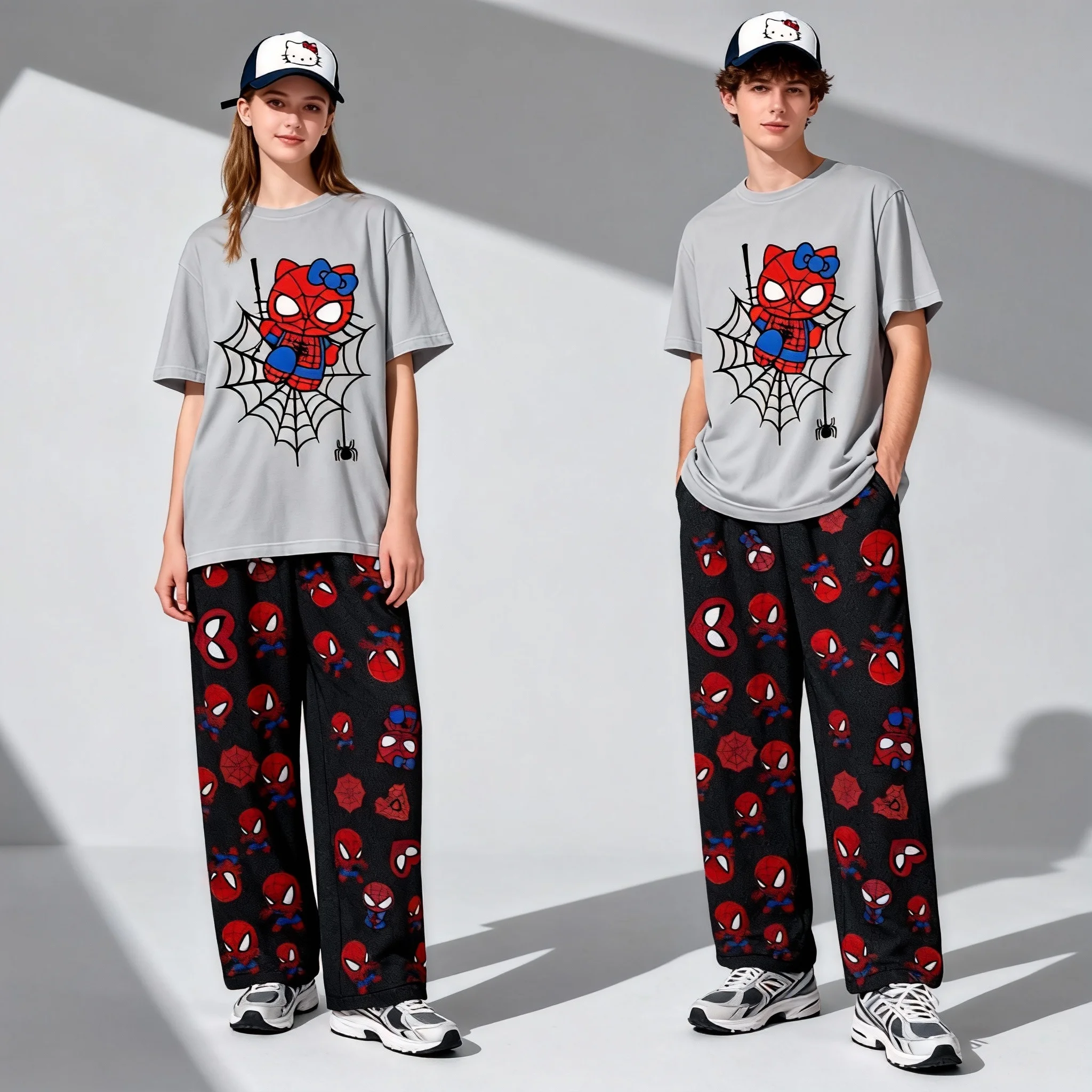 Frühling und Herbst Sanrio Serie Hallo Kitty Kurzarm Gerade Bein Hosen Übergroßen Erwachsene Paar Set Familie Set Neue Stil