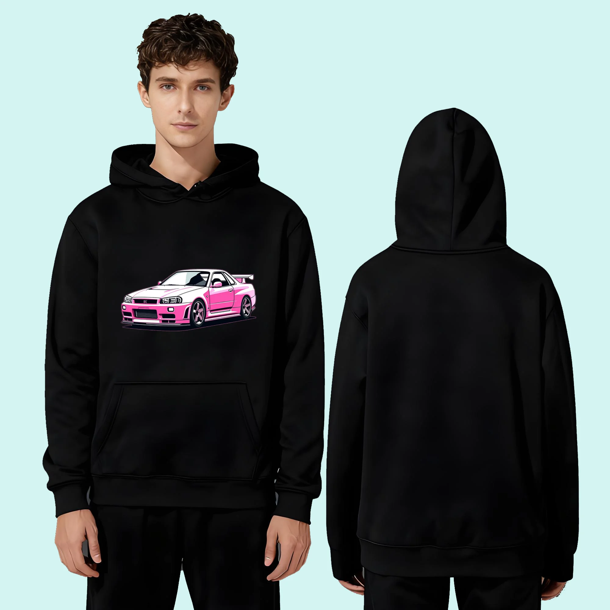 Ein 330G-Hochleistungspullover für Männer und Frauen im Jahr 2025, lässig und bequem, mit einem modischen rosa Sportwagen-Aufdruck