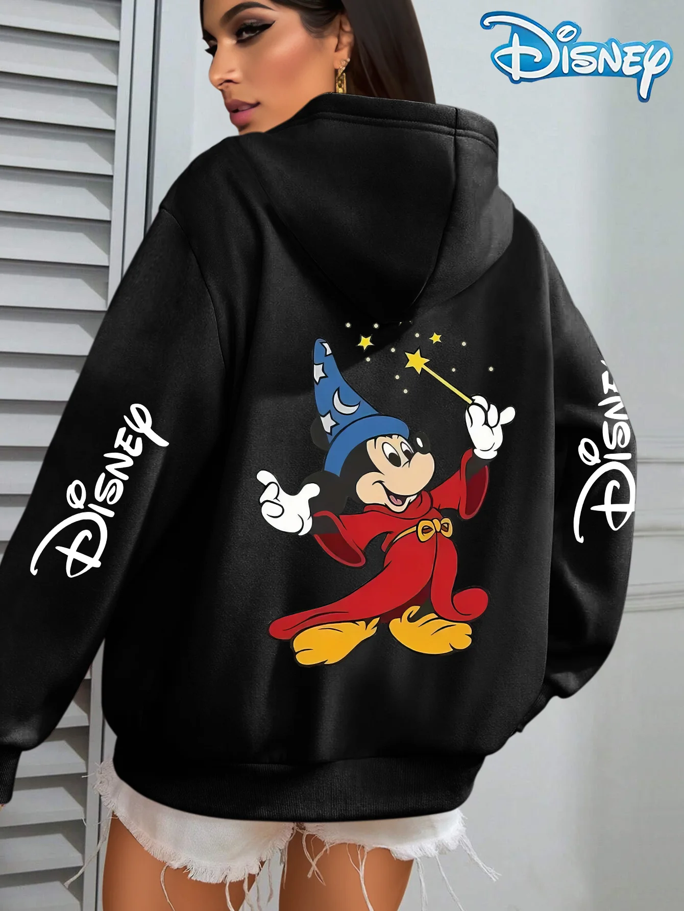 Disney Mickey Mouse Magician Bedrucktes Kapuzen-Sweatshirt, Übergröße, Street-Loose-Stil, lässig, Herbst/Winter, Dark Series, modische Jacke