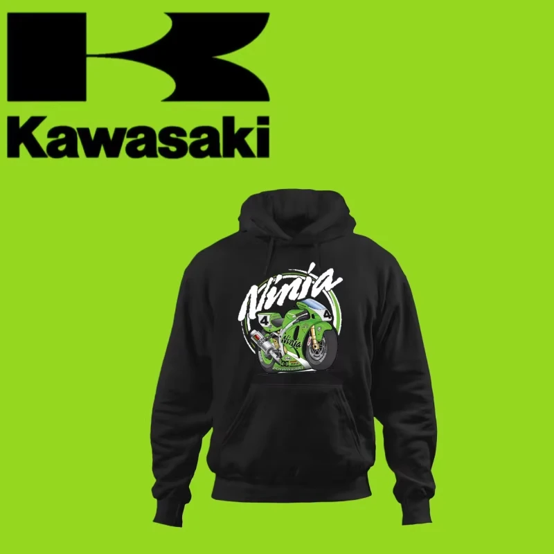 2026 Neuer schwarzer Hoodie mit Kawasaki-Motorrad-Logo für Frühling und Herbst. Hoodie mit Herbst- und Winterdrucken