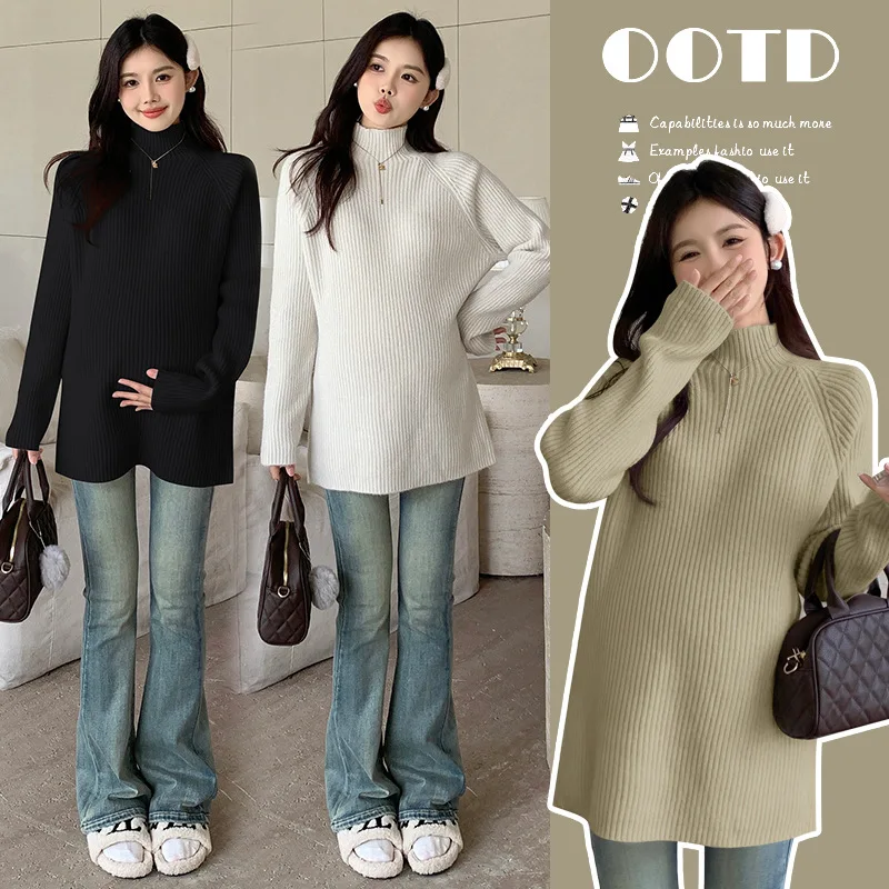 Umstandspullover, halber Rollkragenpullover, lockerer, fauler Wind, Herbst und Winter, verdicktes, warmes Umstands-Bottom-Shirt, Still-Top