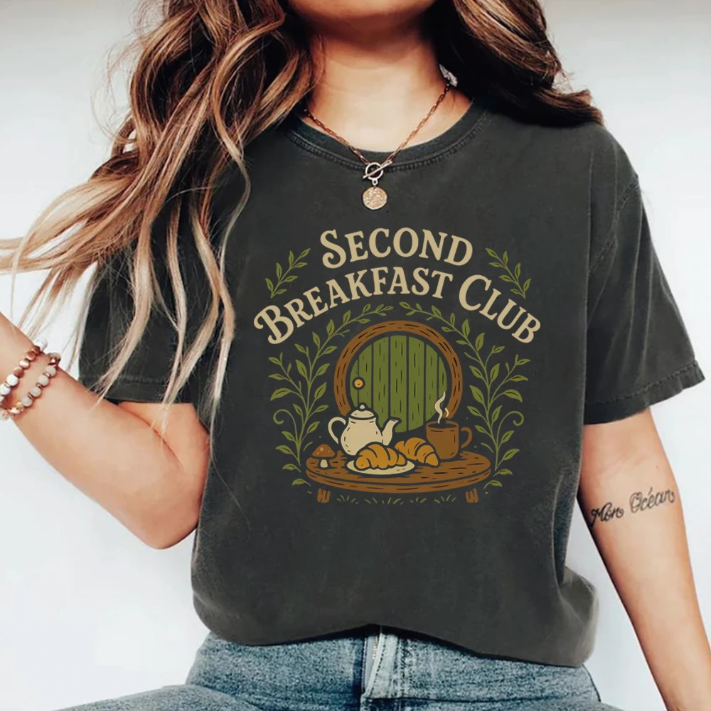 Second Breakfast Club T-Shirt, Fantasy-Buchliebhaber-Shirts, von Mittelerde-Fans inspirierte Kleidung, T-Shirt, Unisex, kurze Ärmel, Top, Geschenk für Fans