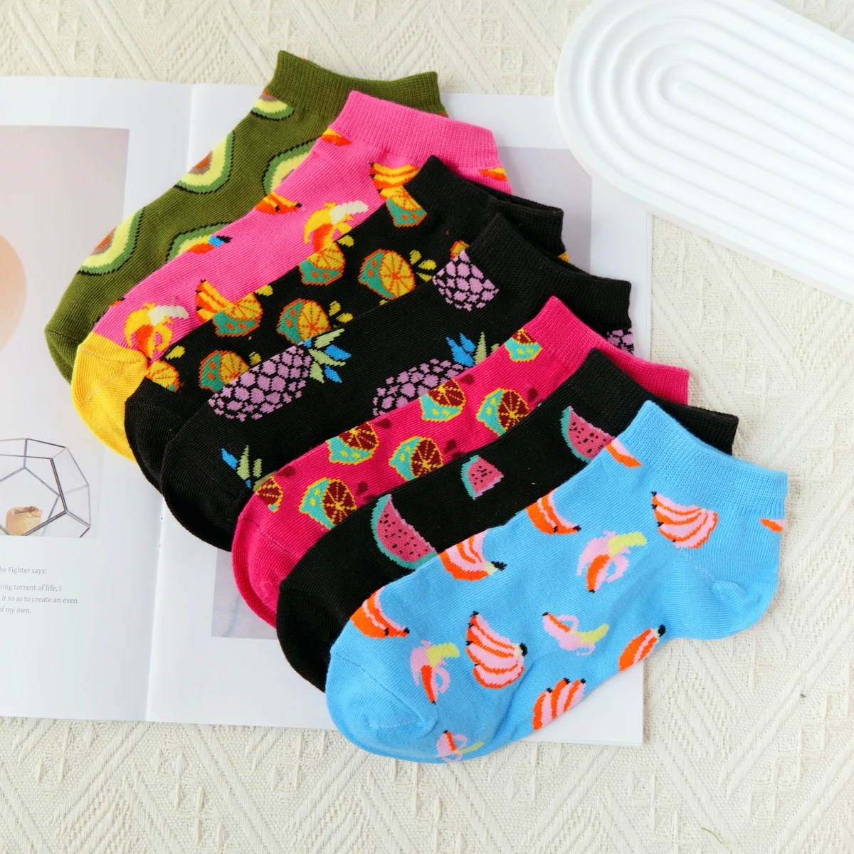 Damen-Söckchen, Obst-Design, bequem, atmungsaktiv, feuchtigkeitsableitend, süß und lustig.