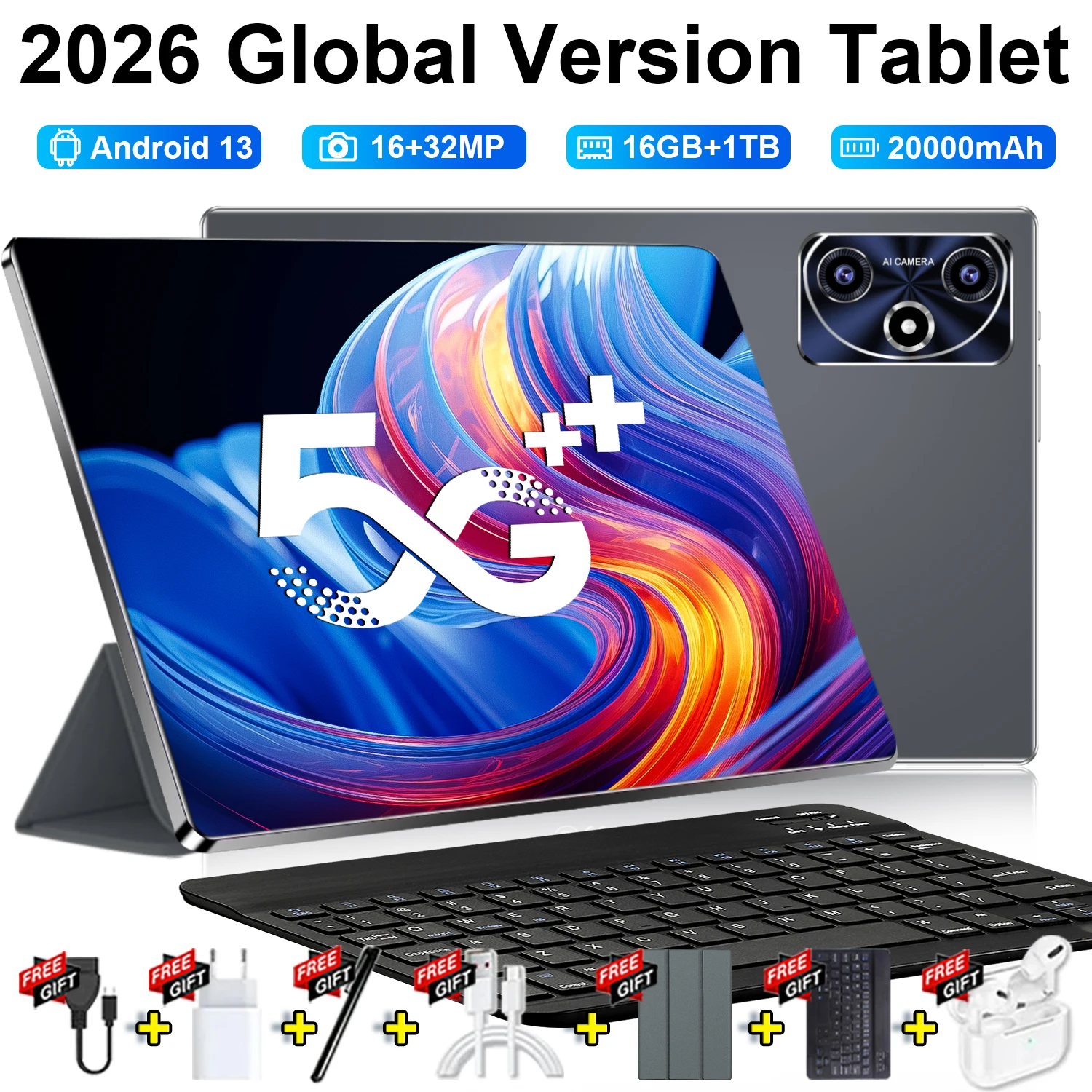POCKAM P13 Pro Android 16 2-in-1 Tablet-PC 13,4 Zoll 120Hz Display 48GB RAM (12+36) 256GB ROM 12000mAh Akku Widevine L1 Tablet-PC