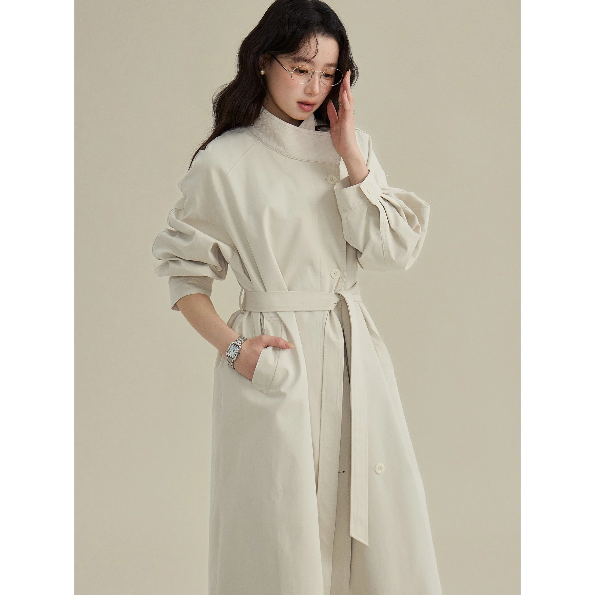 2026 Neuer Cross-Border Mode Damen Trenchcoat im britischen Stil, Frühling, mittellang, tailliert, Stehkragen-Oberbekleidung