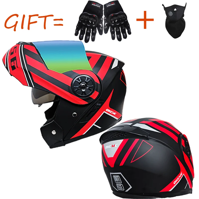 Klappbarer Motorradhelm mit abnehmbarem Innen-Sonnenvisier für Männer und Frauen, Unisex-Modulhelme mit Handschuhen und Schal