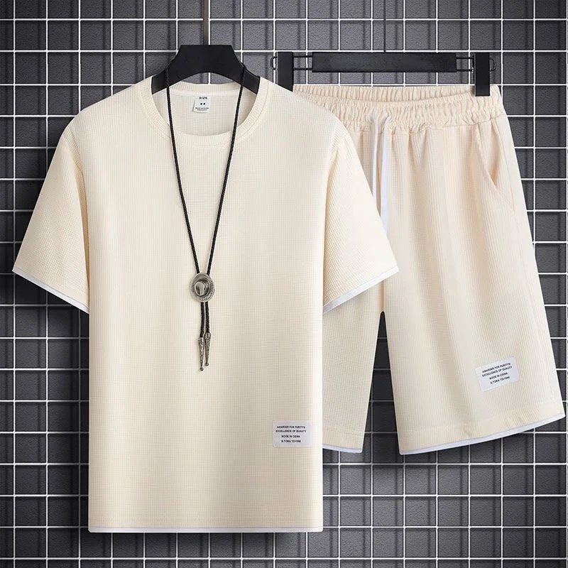 Herren Sommer Leichtgewichtige Lockere Kurzarm-T-Shirt-Set Atmungsaktive Freizeitkleidung Polyesterfaser Kurze Hosen