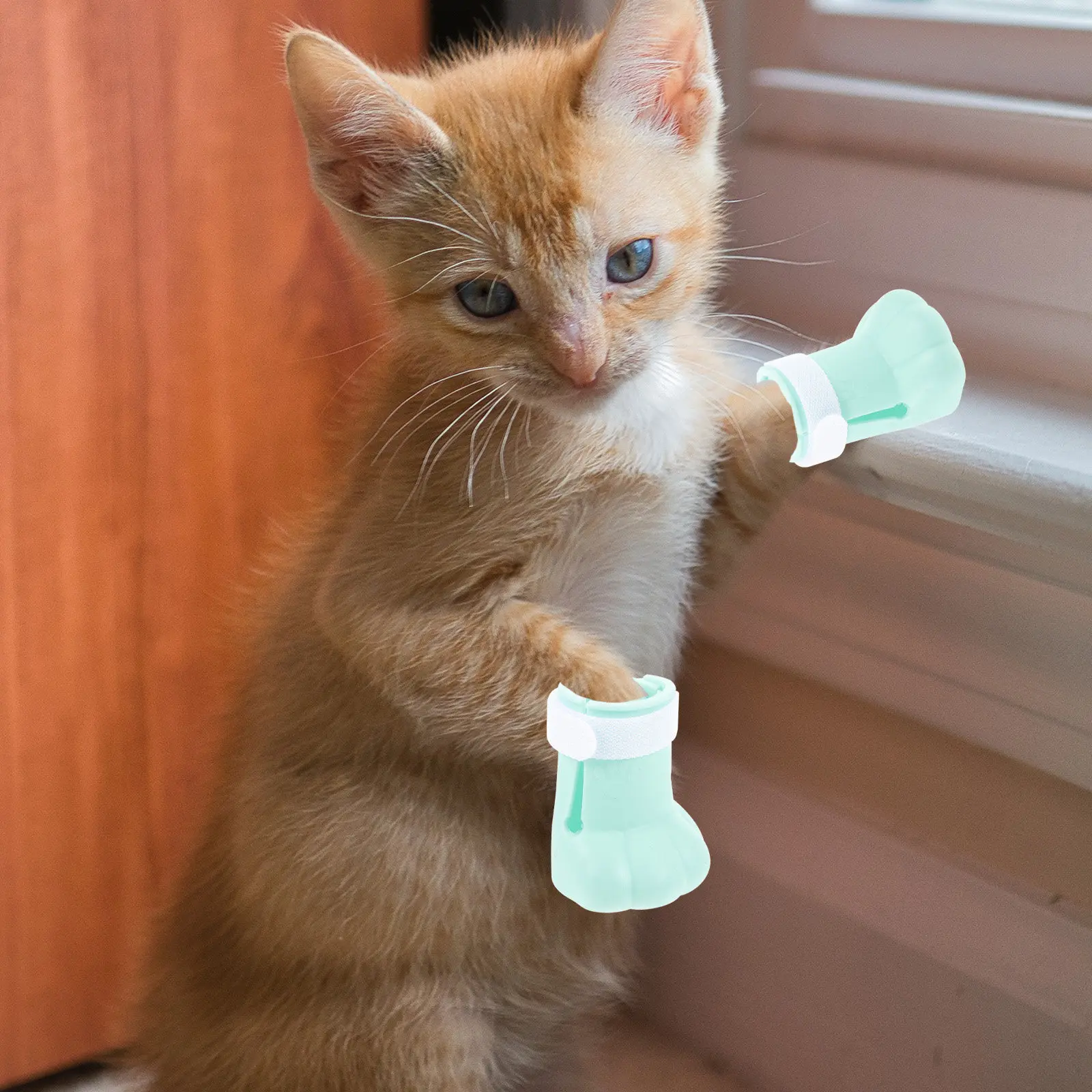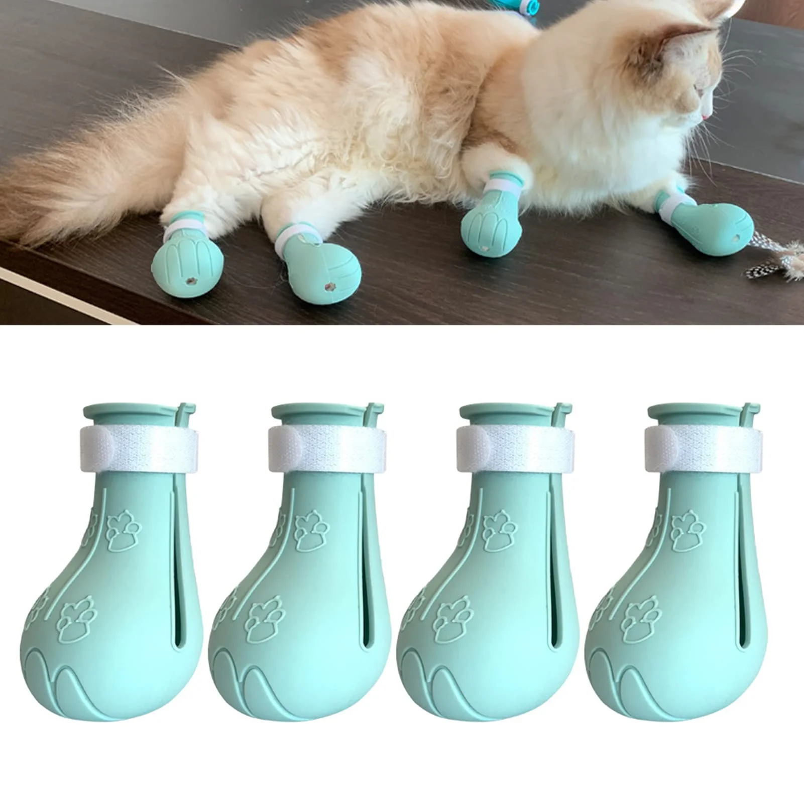 4-teilige Katzenspezifische Schuhe, Katzenpfotenabdeckungen, Schutzpolster, Klauenschuhe, die zum Baden, Nageltrimmen, Ohrenreinigungsbehandlung verwendet werden