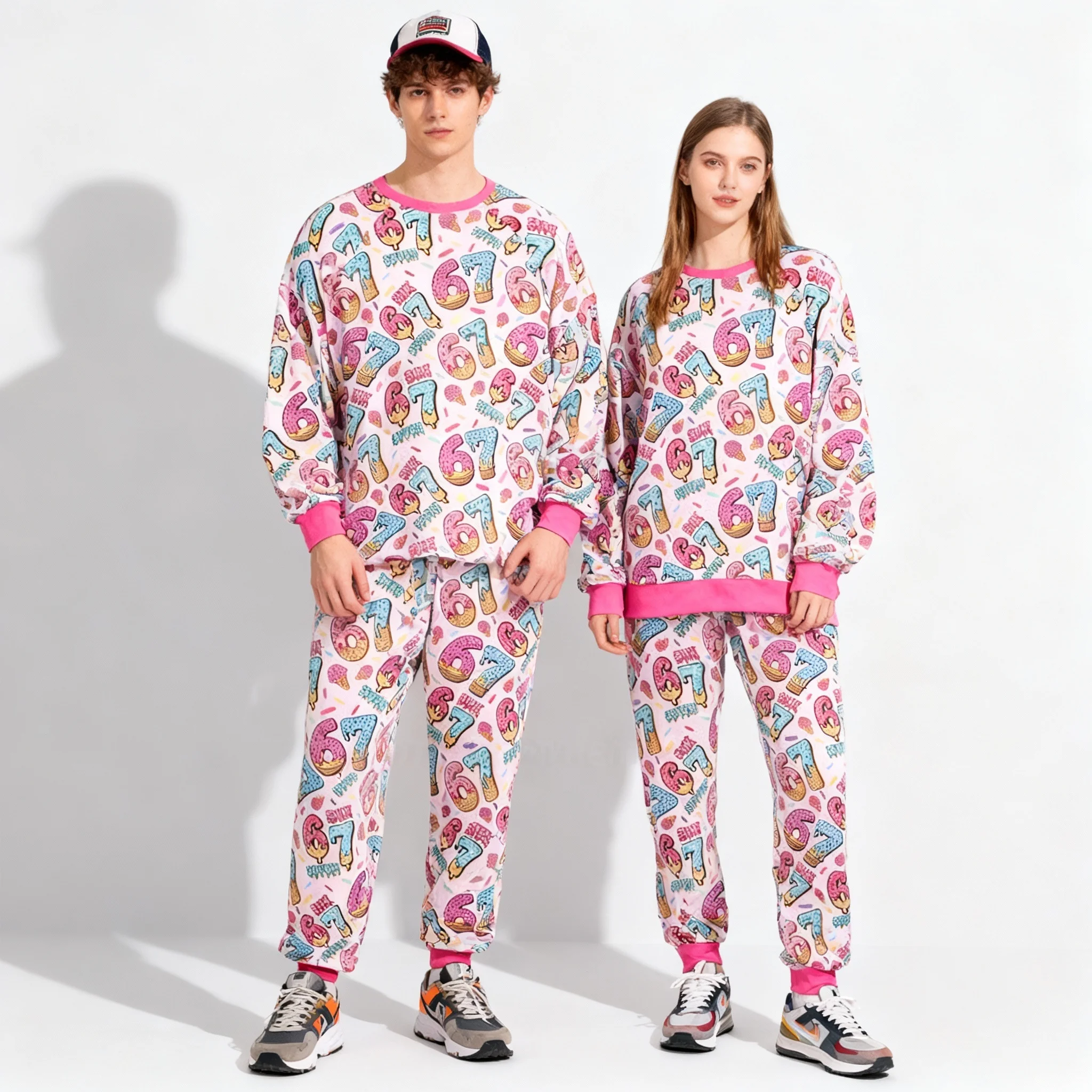 Hot Hand Gesture SIX SEVEN Christmas Party Themed Pyjama Pullover Sweatshirt und Hose Set Erwachsene Herbst und Winter Geschenk