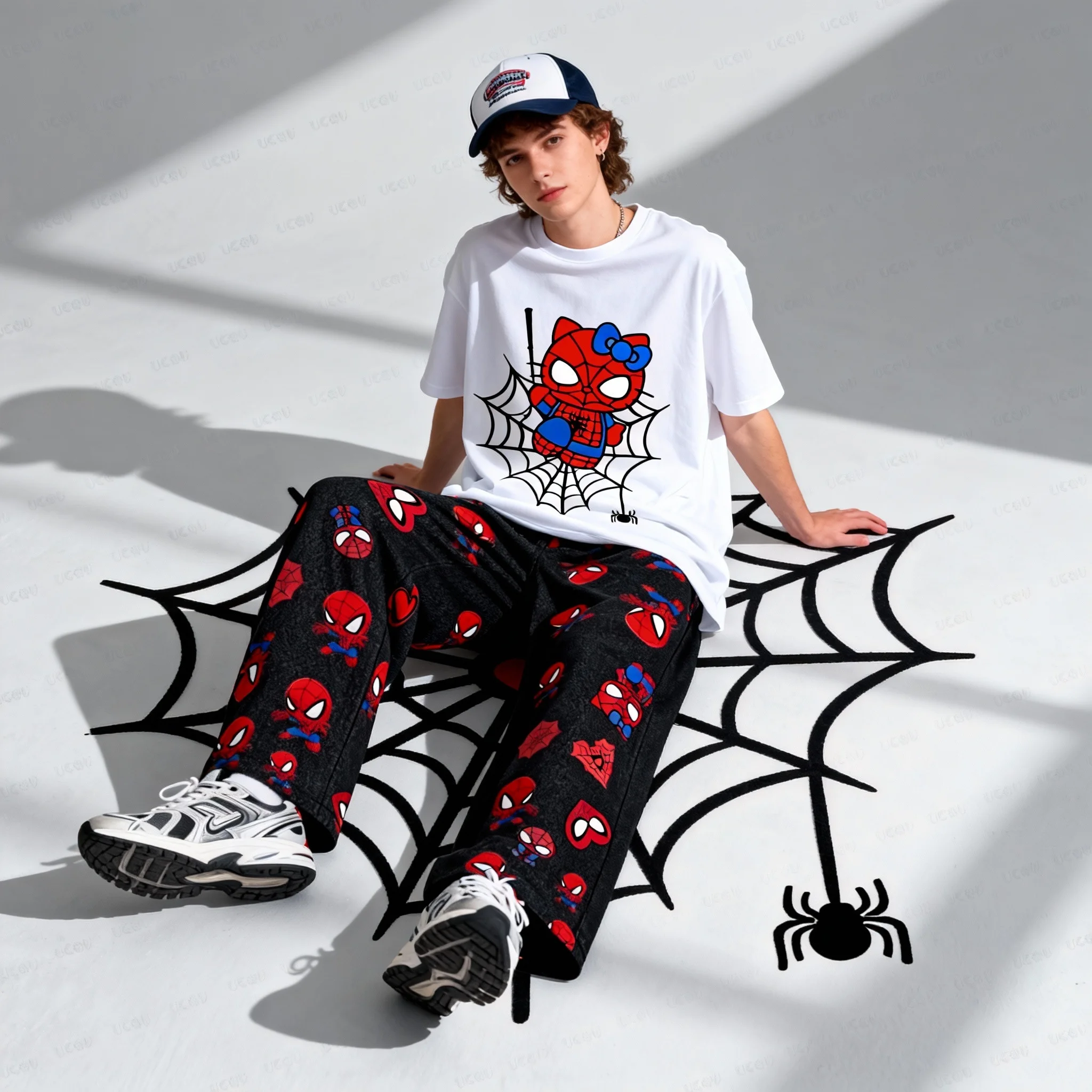 Frühling und Herbst Heißer Verkauf Disney Serie Süße Kühle Spider Man Kurzarm Gerade Hosen Erwachsene Set Familie Set Neue Stil