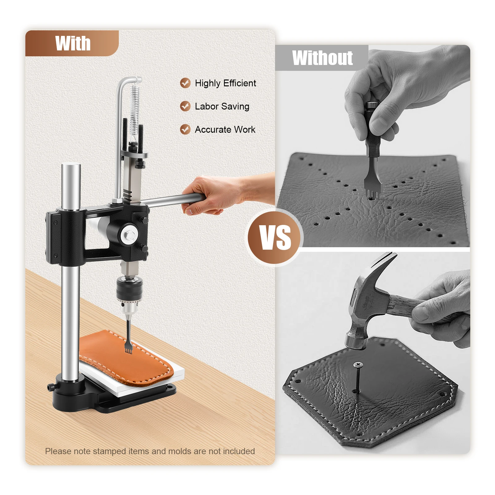 Manueller Pressstanzer, höhenverstellbar, 0–16 cm, Lederstempelpresse, manuelle Dornpresse, Stempelwerkzeuge für PP-Platten, Skala, Alaun
