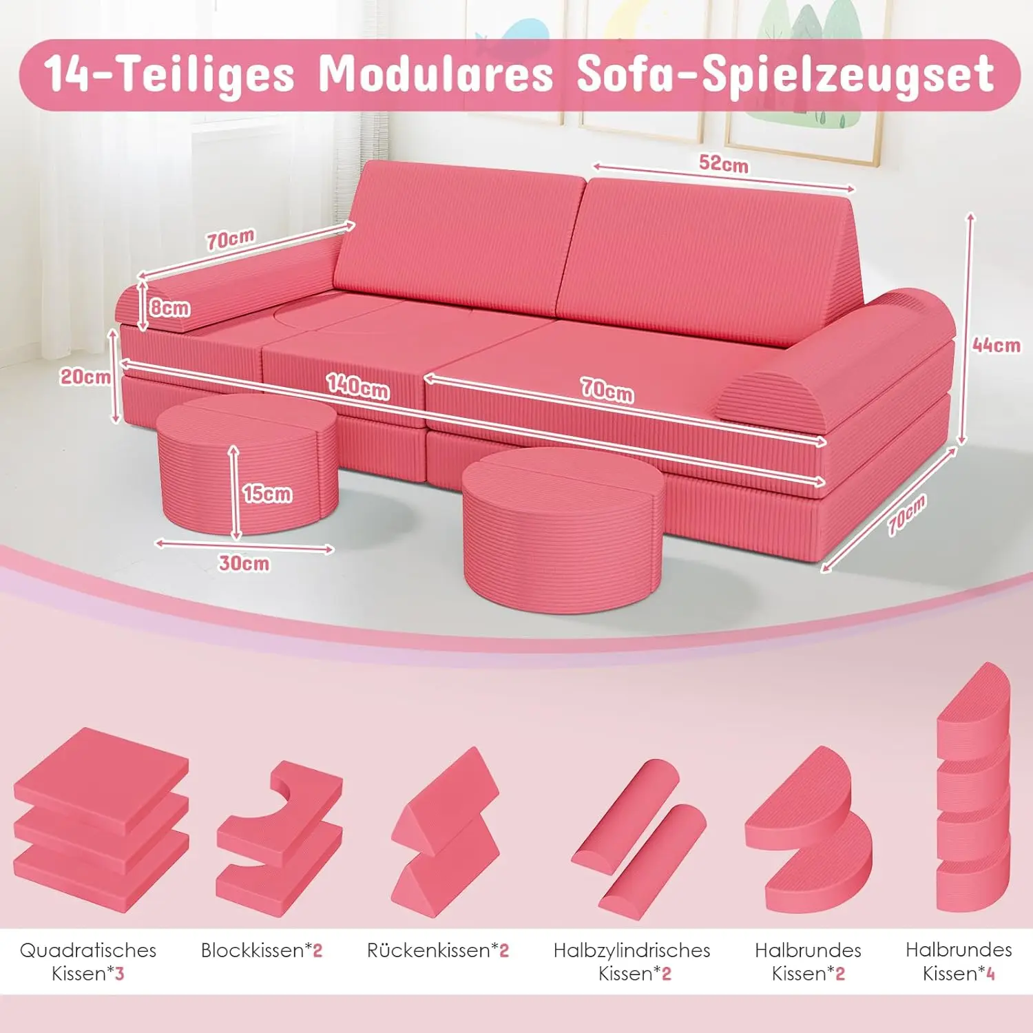 14-teiliges Kinder-Sofa-Set, kreative Kombination, Sofa, Gebäude, Spielhäuser, Schloss mit 7 Formen, für Kinder und Erwachsene, Zuhause, Spielen, Entspannung