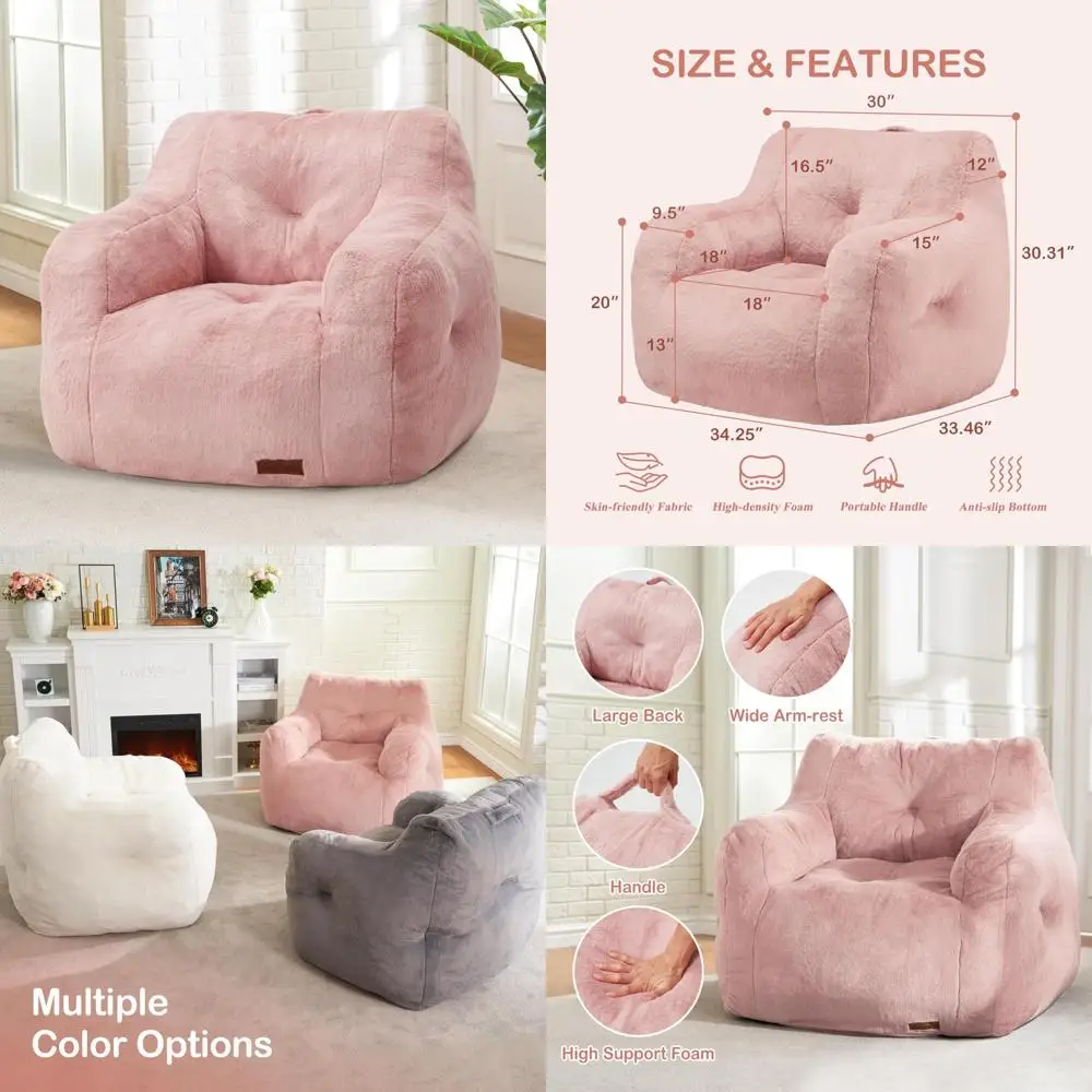 Ultra gemütlicher, pelziger Sitzsackstuhl | Plüschsessel mit Schaumstofffüllung zur Entspannung von Erwachsenen