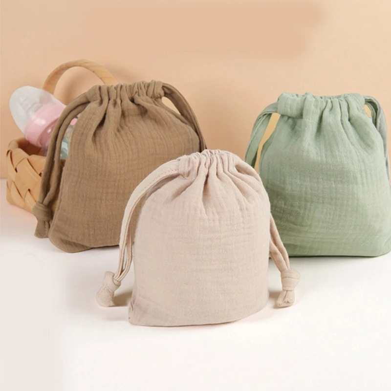 090B Aufbewahrungslösung für Säuglingspflege, strukturierte Baumwollbehälter mit Kordelzug für Schnuller