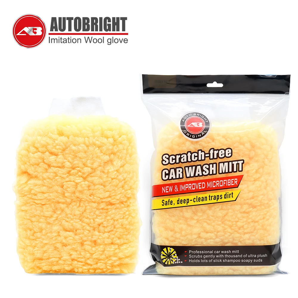 AUTOBRIGHT Gelber, doppelseitiger Autohandschuh aus Kunstwolle, fusselfrei, kratzfrei, lackfest, langlebig, für die Reinigung von Autoinnen und Außen