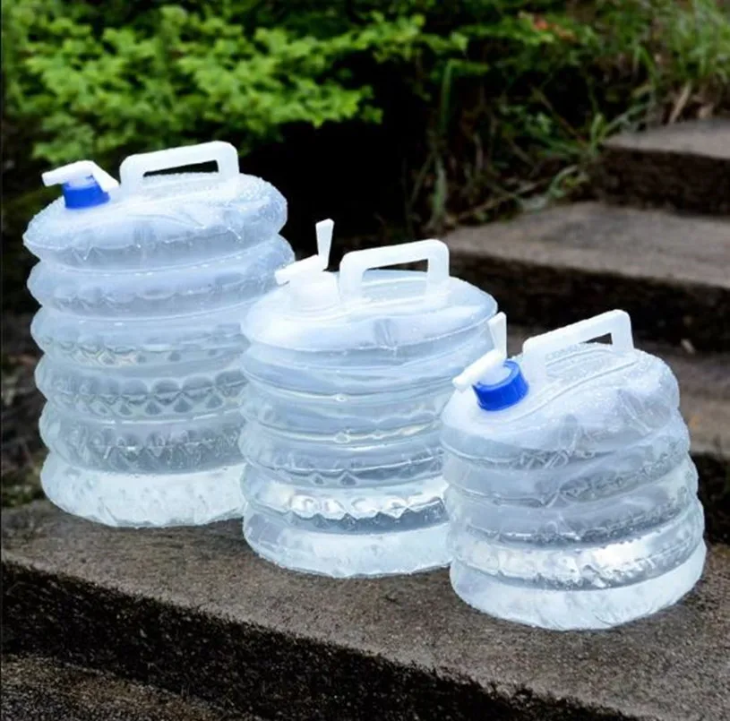 PE-faltbarer Wasserbeutel, einziehbarer Eimer, Lebensmittelqualität, für den Außenbereich, tragbar, Notfall-Wasserspeicher, Wasserkocher, Auto, Camping, 5 l–15 l