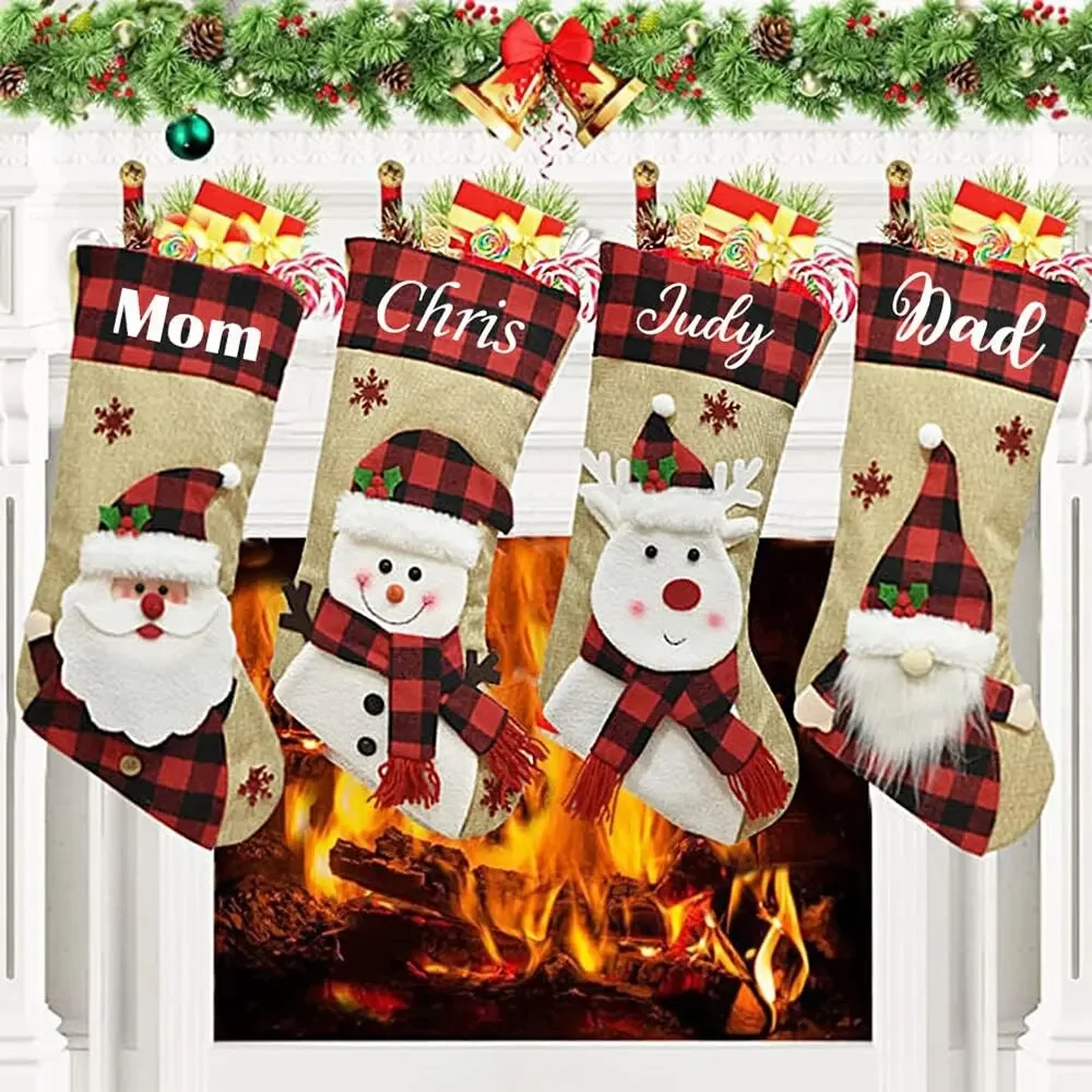 Große Weihnachtssocken, personalisierter Name, Weihnachtsdekoration, Geschenktüten für Kinder, individuell bestickte Namenssüßigkeitssocken für Kinder