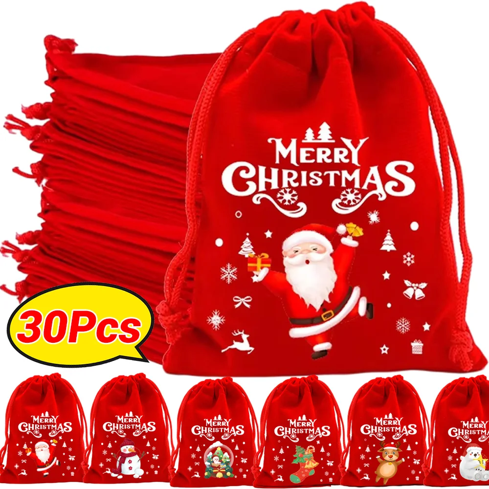 Velvet Christmas Gift Bags with Drawstring Cute Santa Claus Snowman Candy Snacks Packaging Storage Bag for Xmas Tree Party Decor