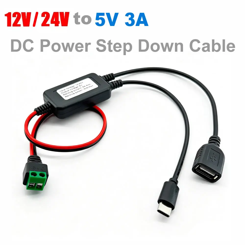 12V/24V zu 5V Konverter DC-DC Buck-Modul Netzteil Kabel 2-Pin Lötfreier Anschluss zu USB-A/Typ-C Step-Down Ladekabel