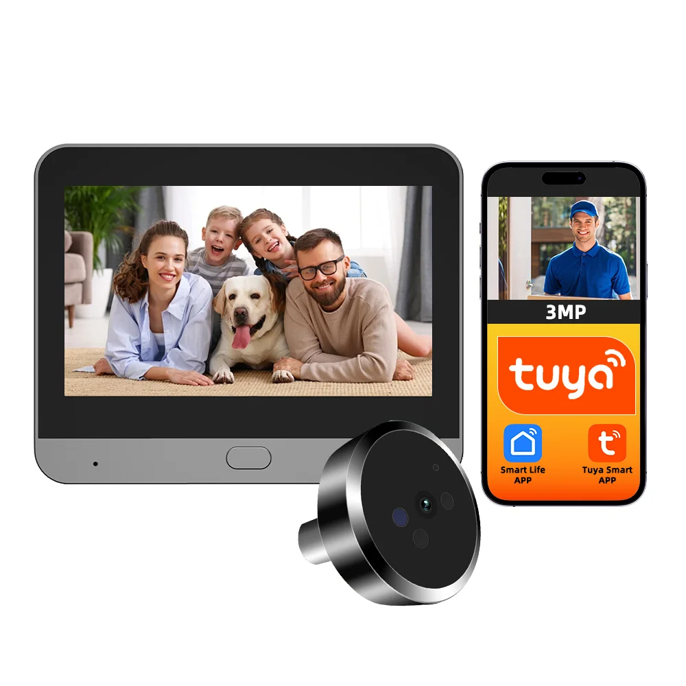4,3 Zoll IPS Bildschirm 3MP Tuya APP Wifi Türklingel Weitwinkel Visuelle Video Tür Telefon Guckloch Viewer Tür Kamera