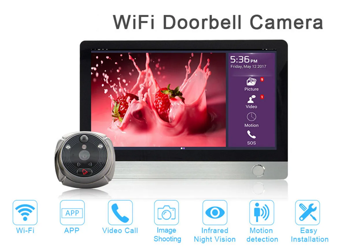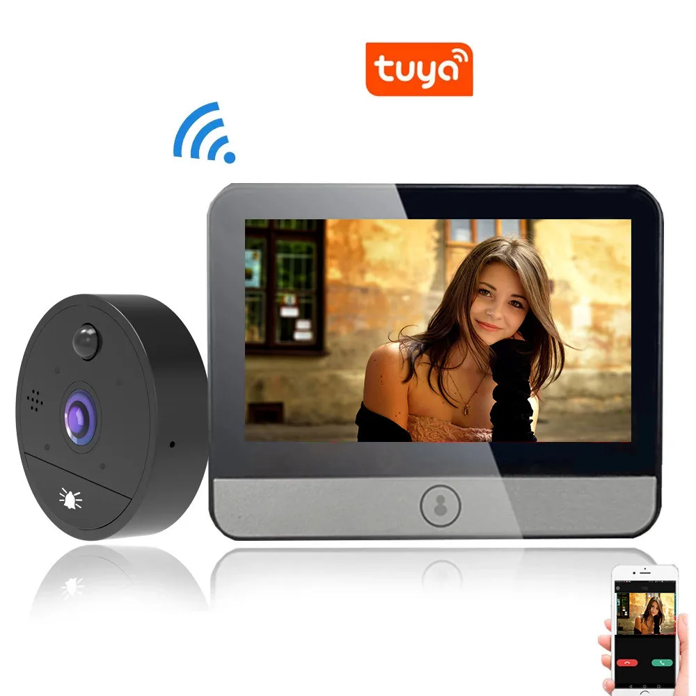 Tuya APP 4,3 Zoll 2MP 1080P Drahtlose WiFi Türklingel mit IR Nachtsicht Und Bewegungserkennung Video Tür Telefon visuelle Tür Viewer