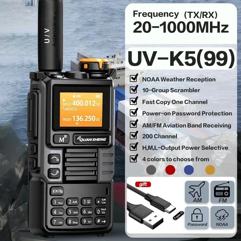 HACHANLUN UV-K6 Upgrade UV-K5 (99) Interphone 5W Air Band Radio Tyep C Aufladen UHF VHF DTMF FM Scrambler NOAA Wireless Frequency