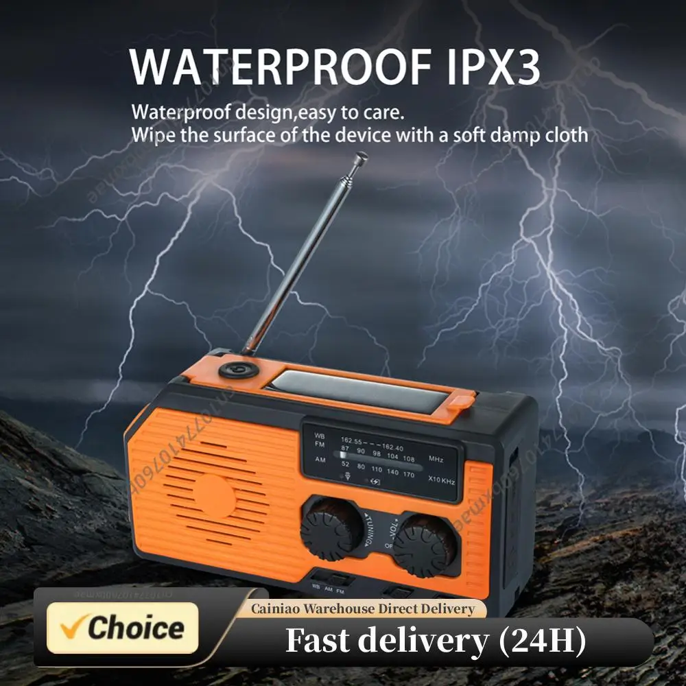 Solarbetriebenes Handkurbel-Radio AM/FM/WB NOAA Wetter-Multifunktionsradio LED-Taschenlampe Powerbank für Outdoor-Camping und Wandern