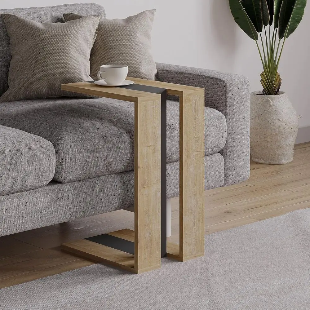 Bambus C Tisch Beistelltisch 360° ° Drehbares TV-Tablett für Couch, Snack-Beistelltische mit Telefon- und Tablet-Steckplatz für Badewanne/Liegestuhl/Bett/Sofa