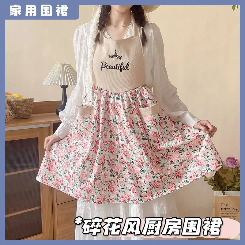 Baumwollschürze im süßen Prinzessinnen-Stil mit kleiner Blumenschürze außerhalb des modischen dünnen Stils in hoher Schönheit für den Heimgebrauch H1