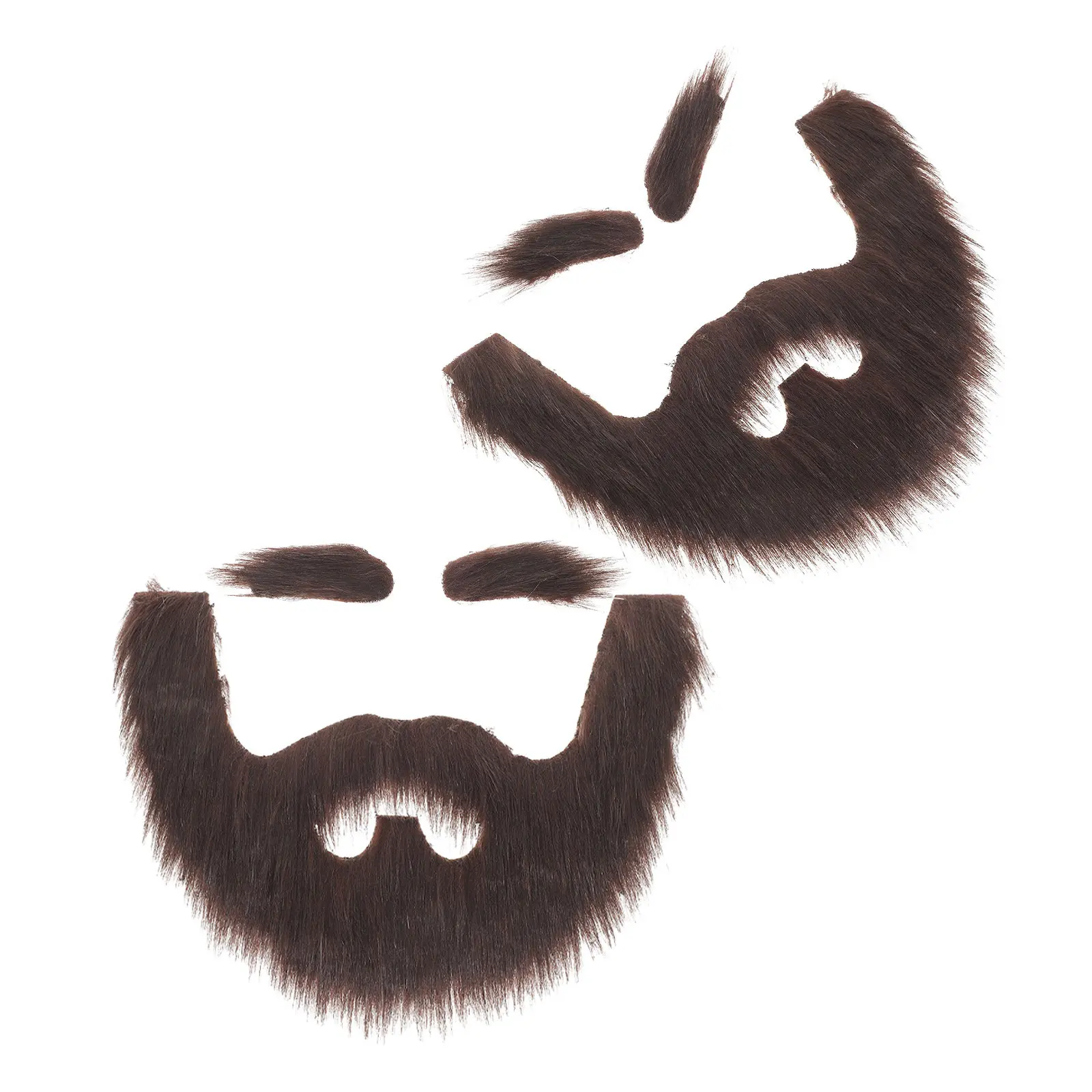 2 Sets Realistischer Bart und Schnurrbart Kostüm-Set Selbstklebendes Gesichtshaar für Halloween Cosplay Party Performance Requisiten
