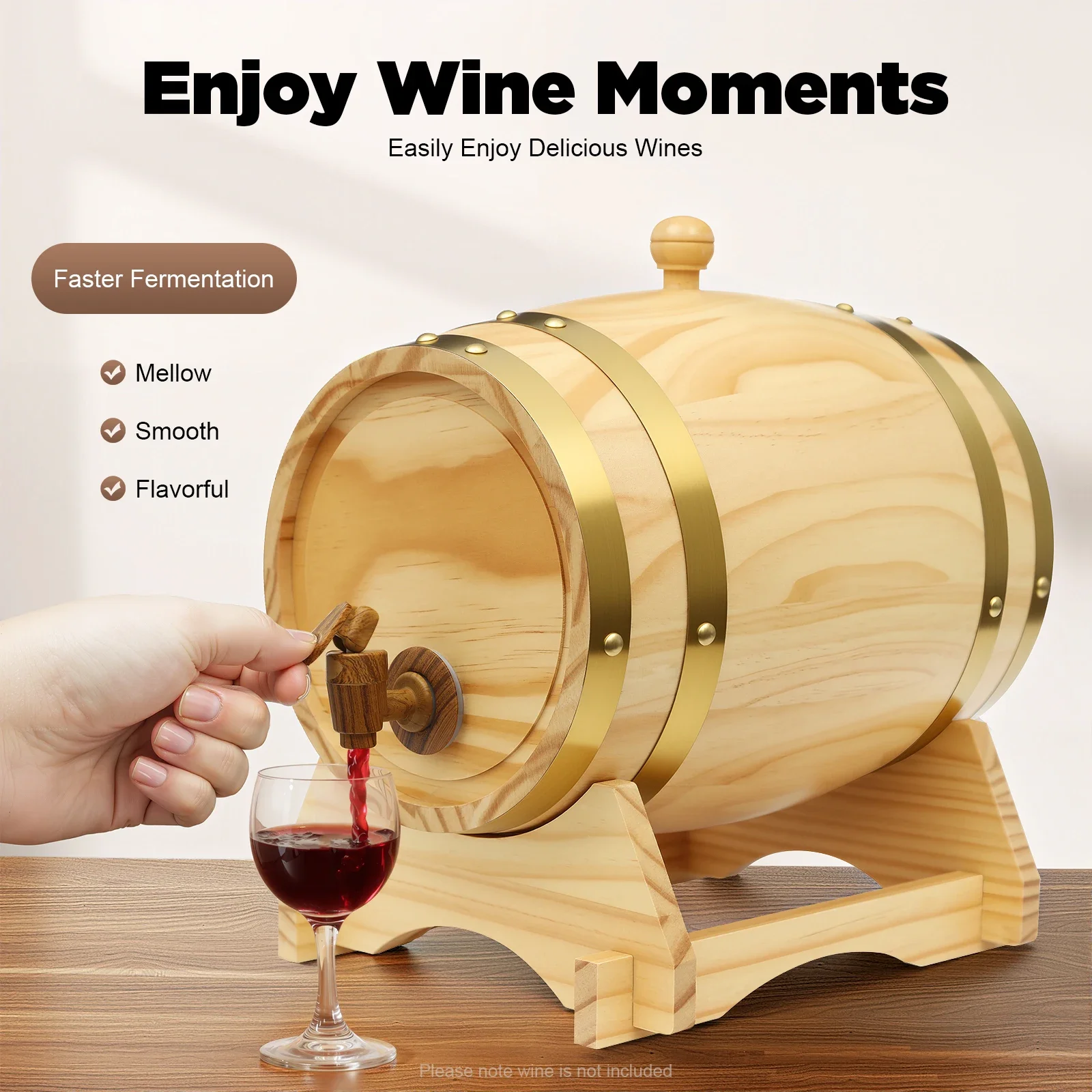 3L Weinfass mit Ständer, Bung und Zapfen, Whiskyfassspender, Bourbonfass für Cocktails, Bourbon Rum, Tequila, Bier