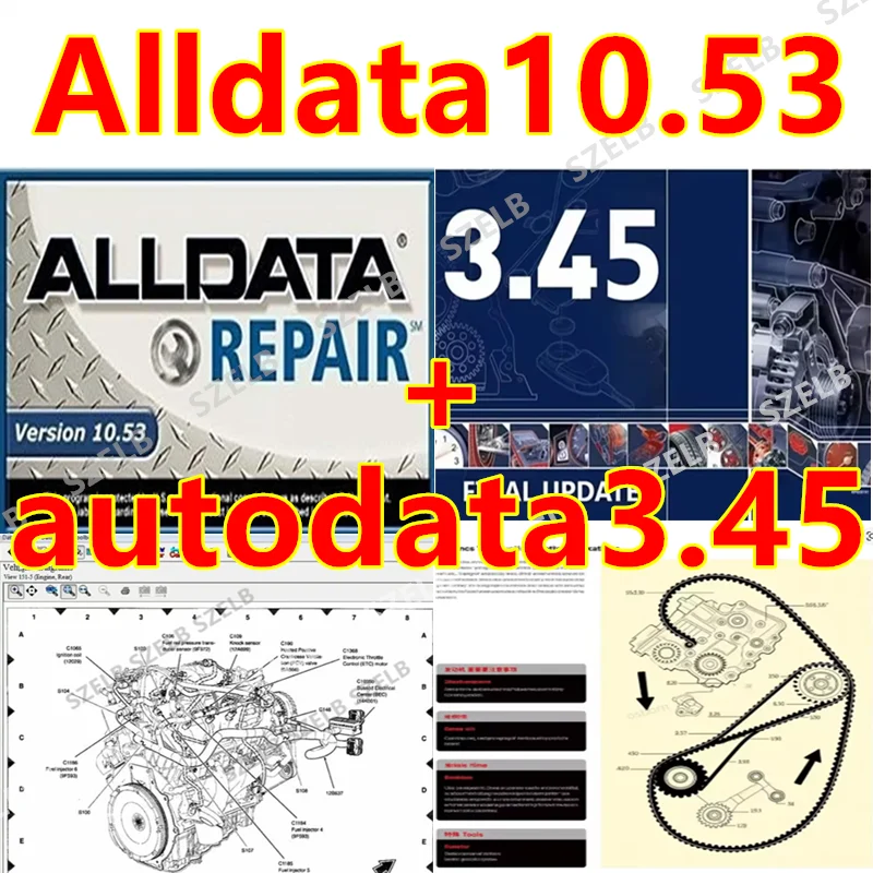 Neueste Alldata 10.53 + Autodata 3.45 Auto-Reparatursoftware, unbegrenzte Installation + Video + kostenlose Installation