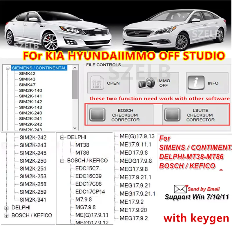 Für KIA Für HYUNDAI IMMO OFF STUDIO für DELPHI-MT38-MT86 für BOSCH/KEFICO EDC15C7... Funktioniert offline mit PCR2.1 IMMO OFF mit Keyg