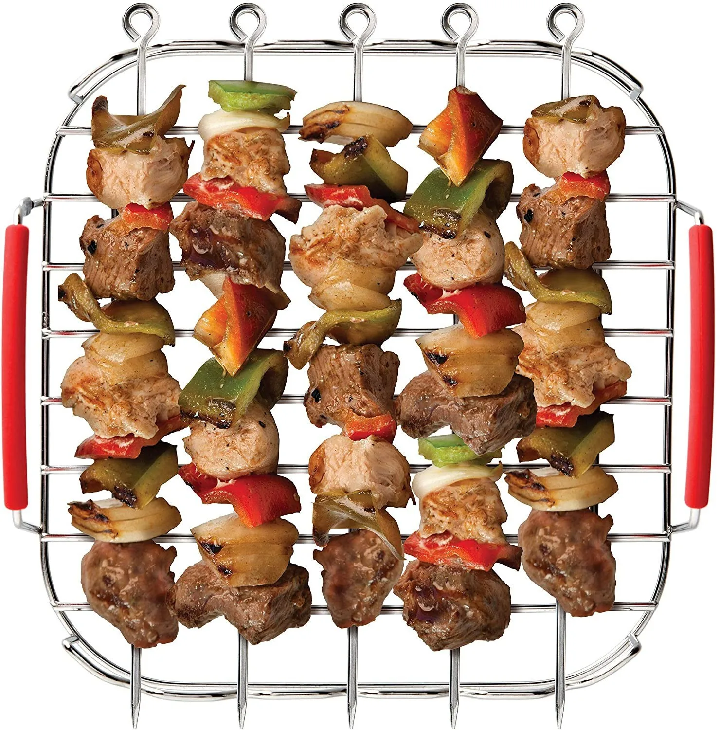 8-Zoll-Luftfritteusen-Grill, quadratischer Edelstahl-Grill mit Spießnadel, Kochen, Dämpfen, Backen, Airfryer-Zubehör