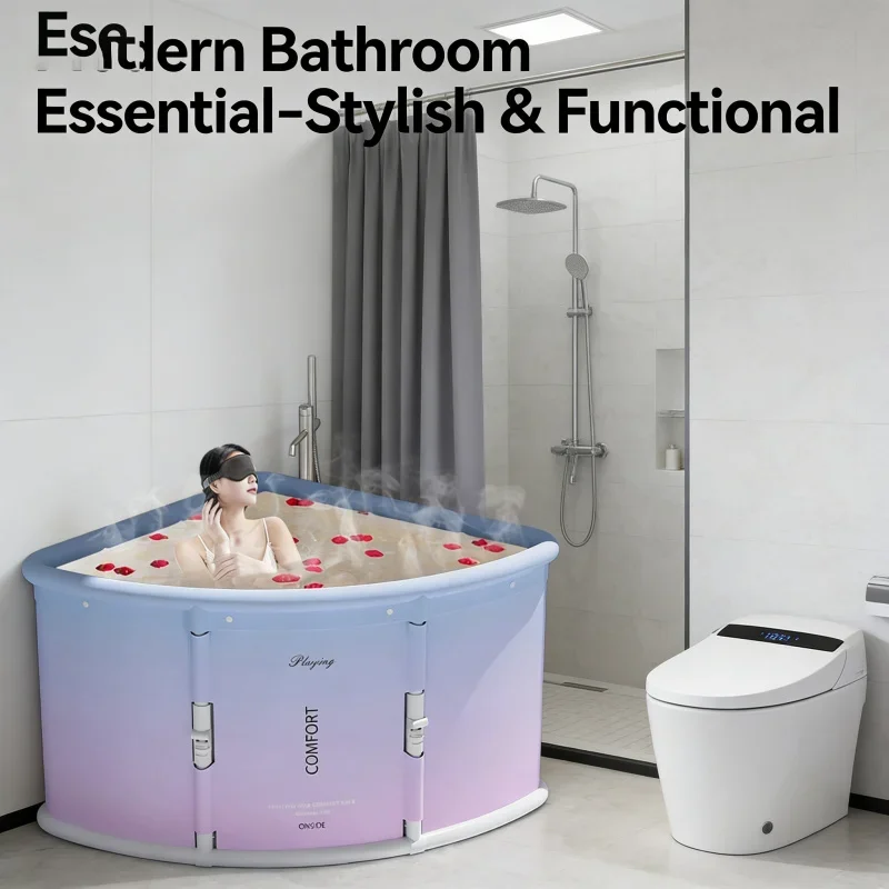 Aufblasbare Faltbare Badewanne für Erwachsene und Kinder - Ein-Sekunden-Aufbau Zusammenklappbare Spa-Wanne für Zuhause Baby-Duschbecken