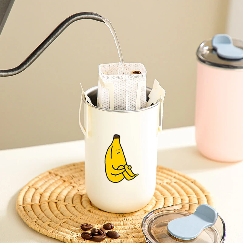 Einfacher und multifunktionaler Wasserbecher aus Edelstahl, geeignet für Kaffee, Milch, Saft, einzigartiger Wasserbecher mit Cartoon-Muster